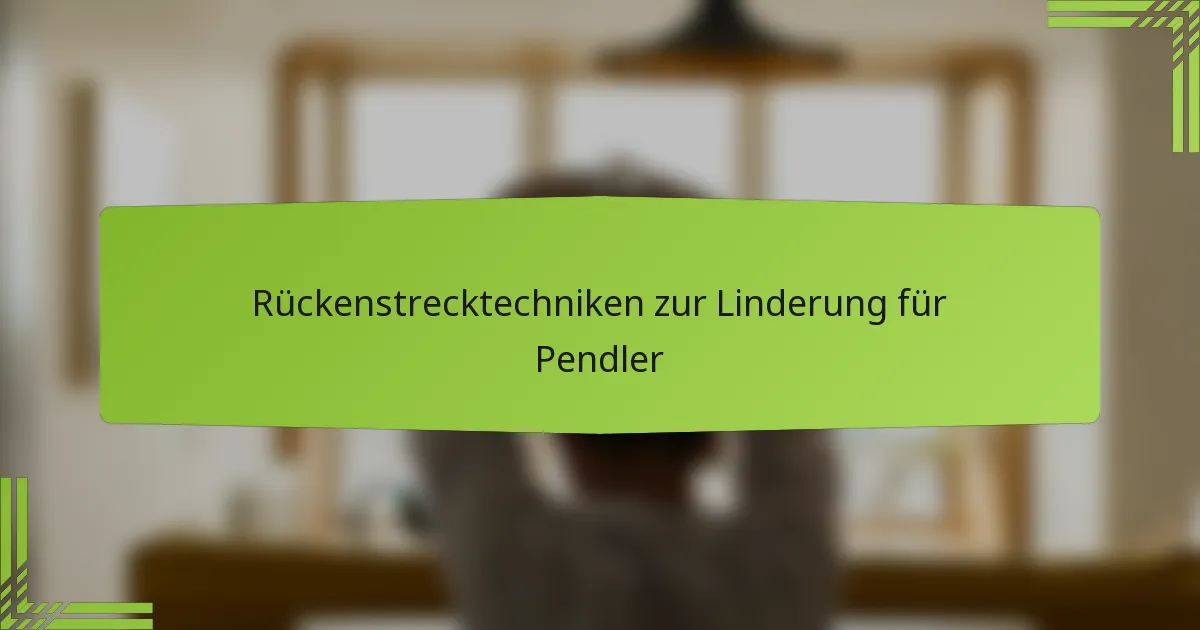 Zu den gängigen Techniken gehören sanfte Drehungen, Vorbeugen und seitliche Dehnungen. Jede dieser Dehnungen kann in verschiedenen Umgebungen durchgeführt werden, was sie für Pendler zugänglich macht. Es ist wichtig, auf Ihren Körper zu hören und Überdehnungen zu vermeiden, um Verletzungen zu verhindern.