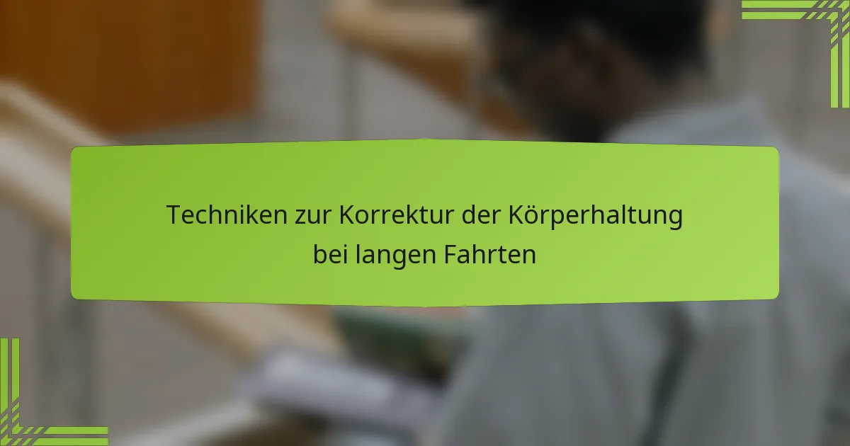 Effektive Techniken zur Korrektur der Körperhaltung bei langen Fahrten konzentrieren sich auf Sitzanpassungen, Unterstützung und regelmäßige Bewegungen, um den Komfort zu erhalten und Müdigkeit zu reduzieren. Die Umsetzung dieser Strategien kann das Fahrerlebnis und das allgemeine Wohlbefinden während längerer Fahrten erheblich verbessern.
