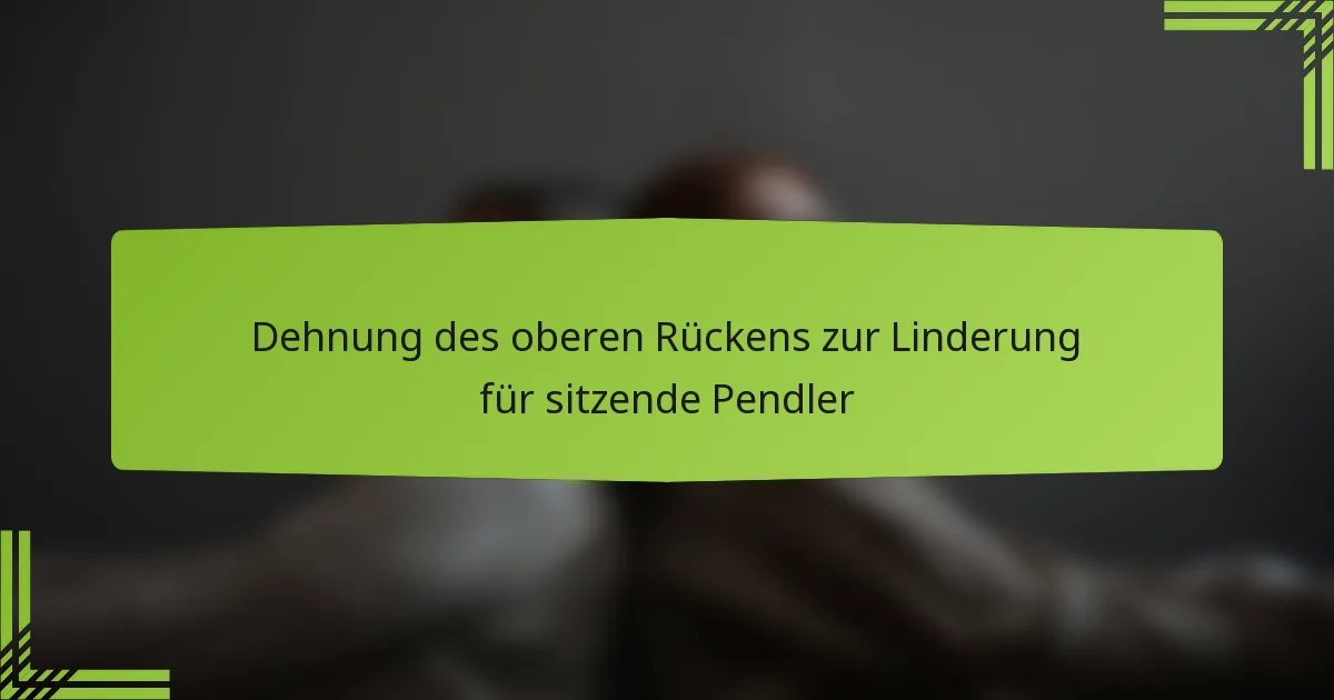 Das Dehnen des oberen Rückens kann Unbehagen bei Pendlern erheblich lindern, indem es Muskelverspannungen reduziert und die Körperhaltung verbessert. Regelmäßiges Dehnen fördert die Durchblutung und erhöht die Flexibilität, was zu langfristiger Schmerzlinderung führen kann.